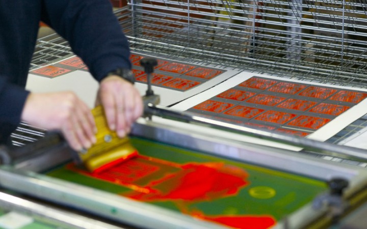 Großauflagen laufen auf unseren zwei neuen High-Speed Zylinderautomaten. Mittlere und kleinere Auflagen werden auf verschiedenen Dreiviertelautomaten oder im Handdruck hergestellt. Auch das Bedrucken von Kundenmaterial ist nach Absprache und Andrucktests gerne möglich.
